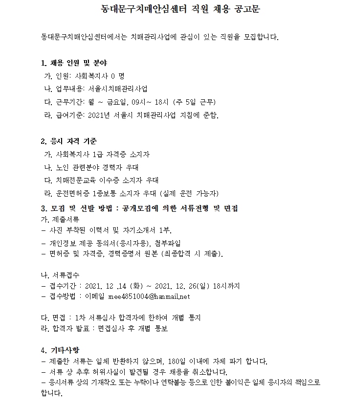 µ¿´ë¹® Ä¡¸Å¾È½É¼¾ÅÍ Ã¤¿ë°ø°í